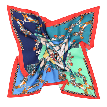 Fabrika OEM Moda Geometrik Baskılı Yazlık İpek Eşarplar Kadın At Desenli Özel Tasarım 90*90cm Müslüman Başörtüsü Kare Saten Eşarp